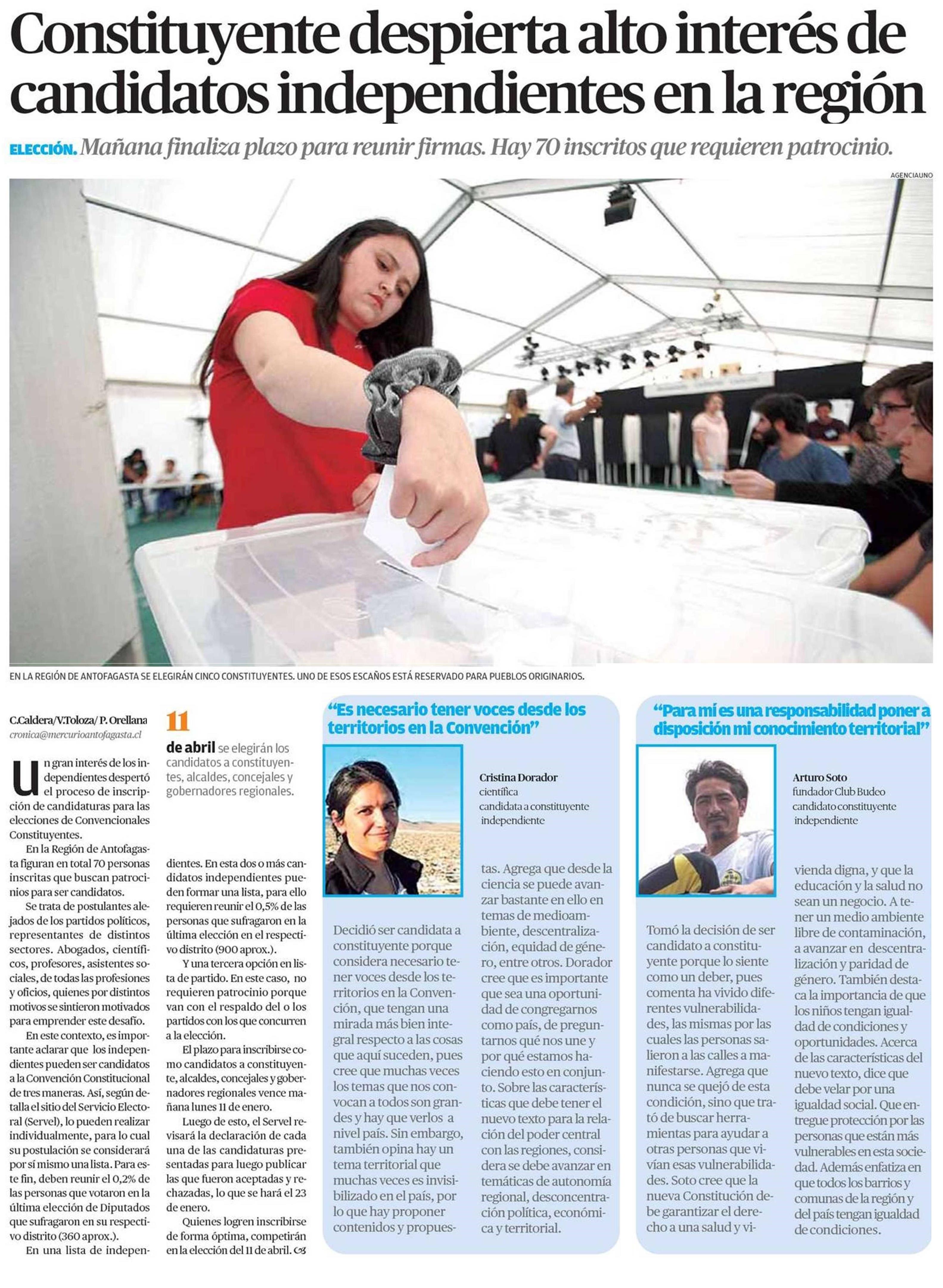 Hoy lunes 11 de enero, finaliza el plazo para realizar este proceso, en donde los ciudadanos de forma voluntaria podrán patrocinar a candidatos independientes de la convención constituyentes.